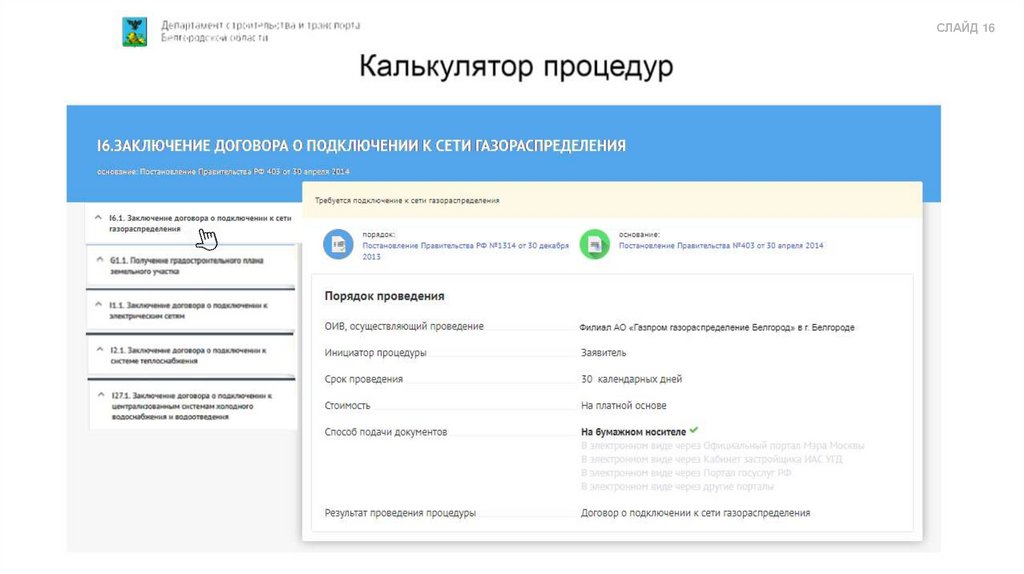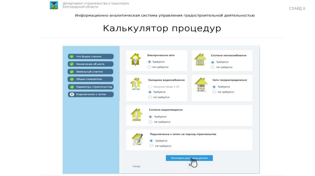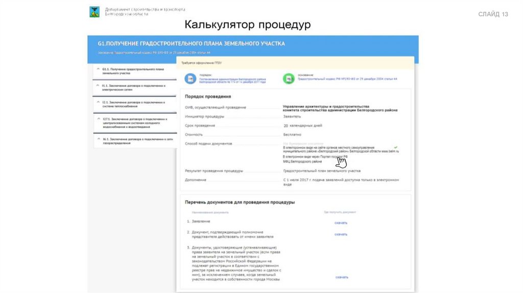онлайн-сервиса «Калькулятор процедур»