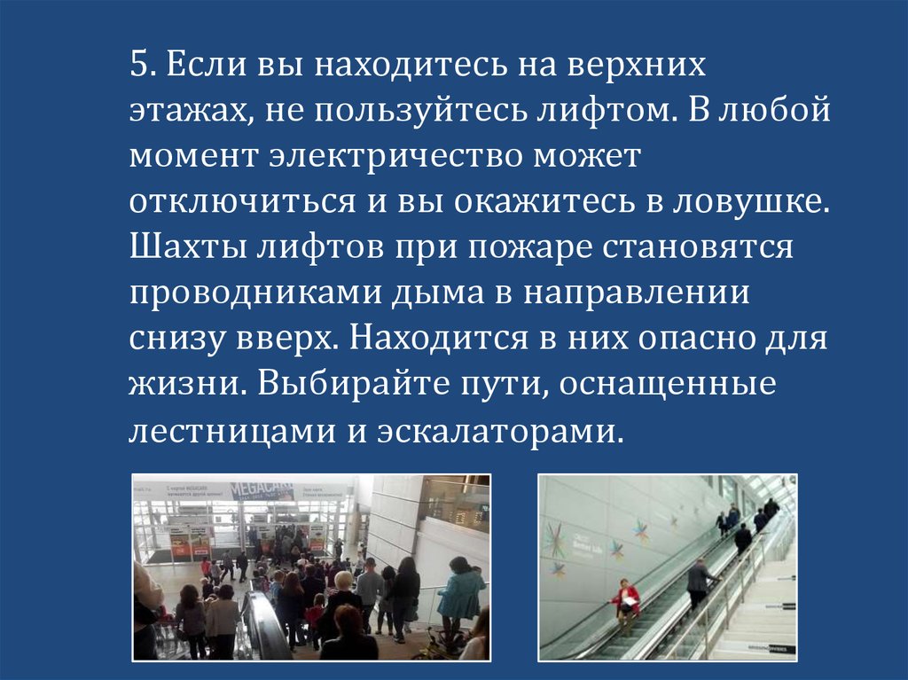 5. Если вы находитесь на верхнихэтажах, не пользуйтесь лифтом. В любой
