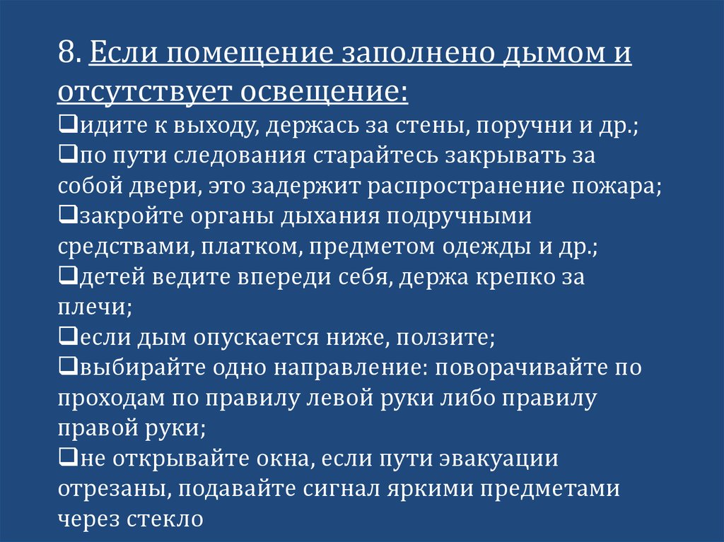 8. Если помещение заполнено дымом иотсутствует освещение: