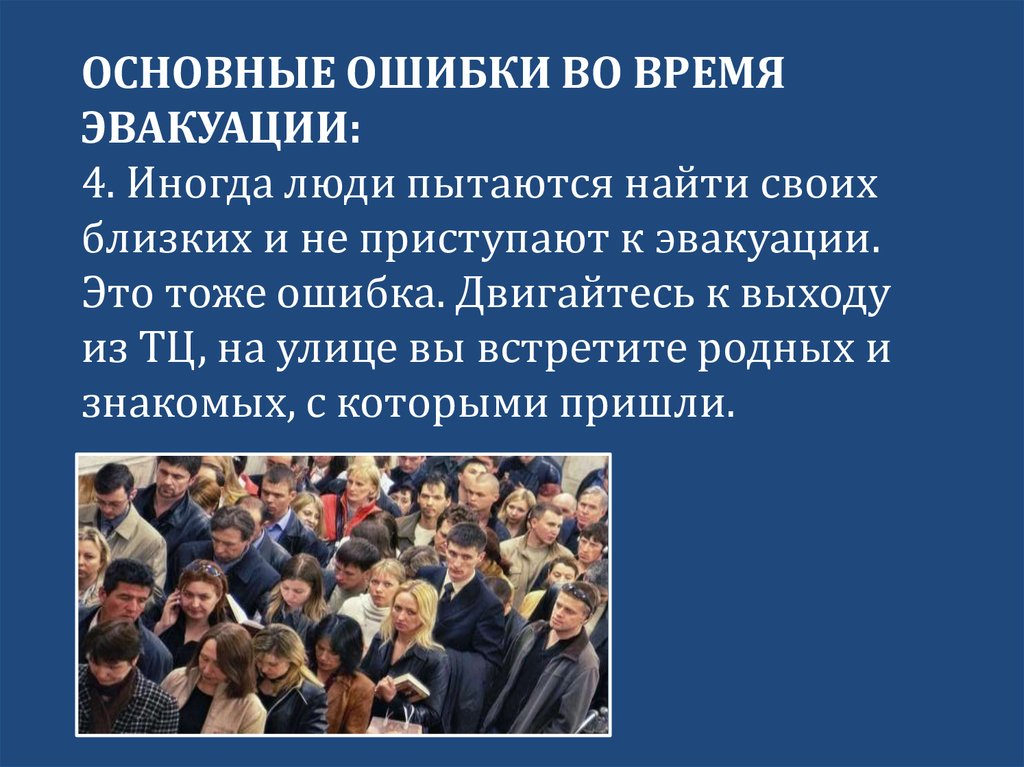 ОСНОВНЫЕ ОШИБКИ ВО ВРЕМЯЭВАКУАЦИИ: