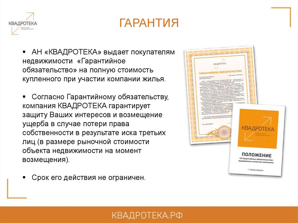 ГАРАНТИЯАН «КВАДРОТЕКА» выдает покупателям