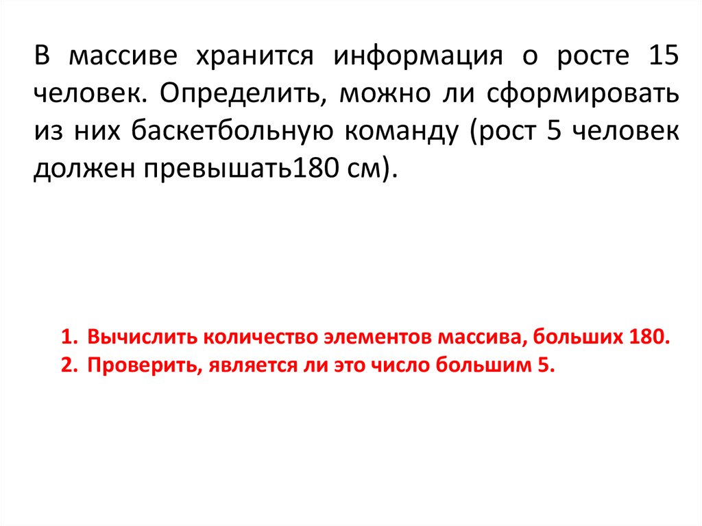 2. В массиве хранится информация о росте 10 человек. Определить рост самого