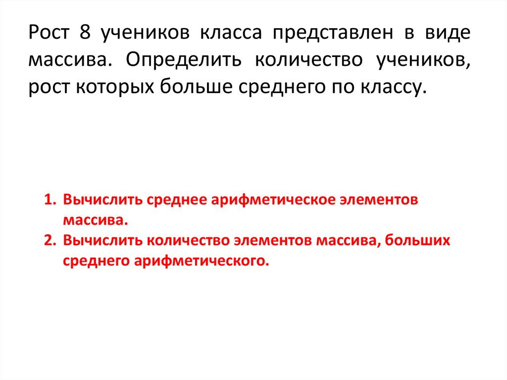 Рост 8 учеников класса представлен в видемассива. Определить количество учеников,