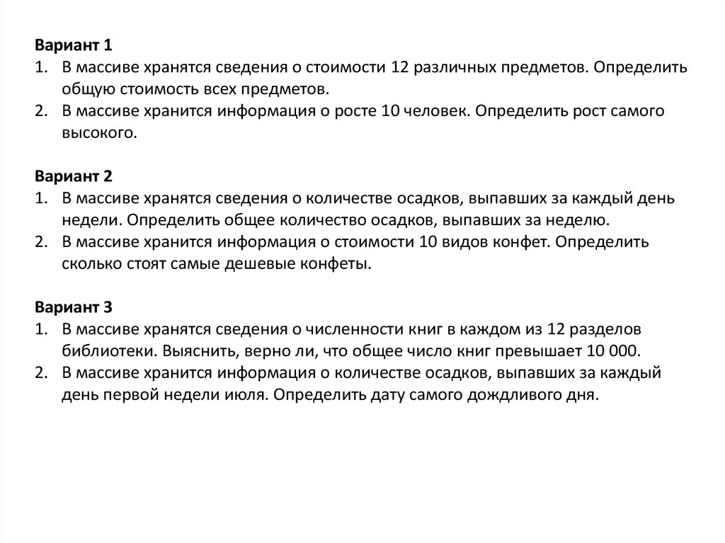 Задачи на одномерные массивы