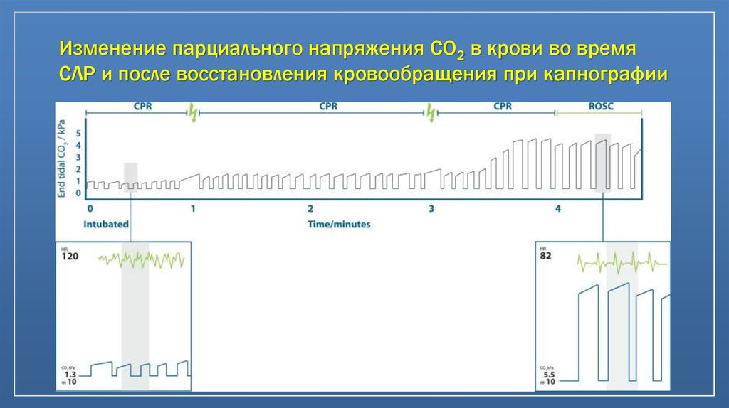 Изменение парциального напряжения CO2 в крови во времяСЛР и после восстановления кровообращения при капнографии