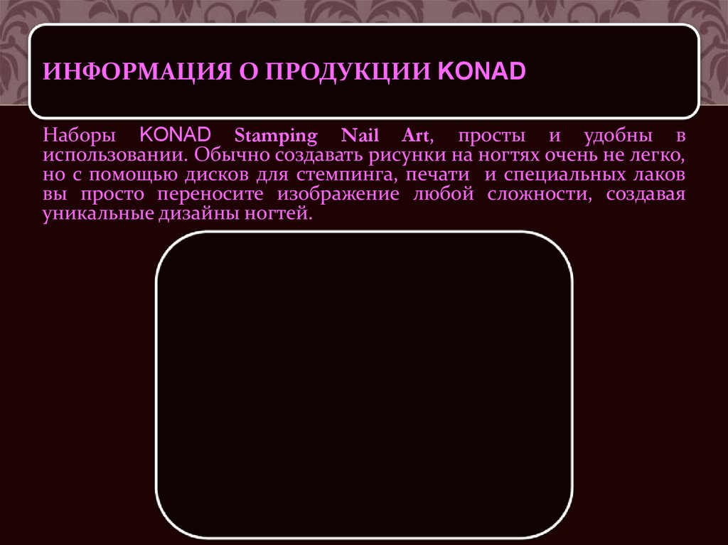 ИНФОРМАЦИЯ О ПРОДУКЦИИ KONADНаборы KONAD Stamping Nail Art, просты и удобны в