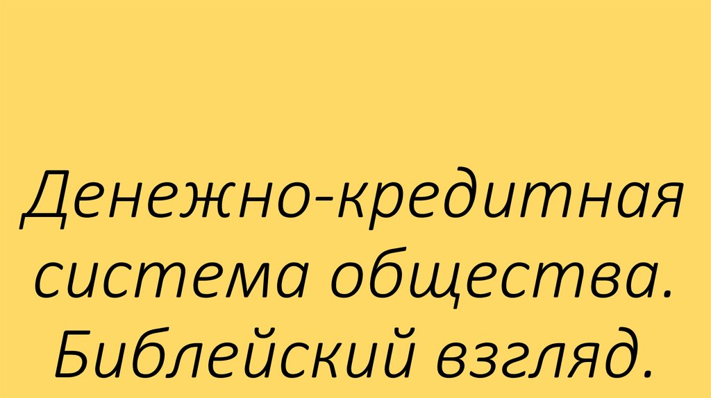 1. Денежно-кредитная система общества. Библейский взгляд.
