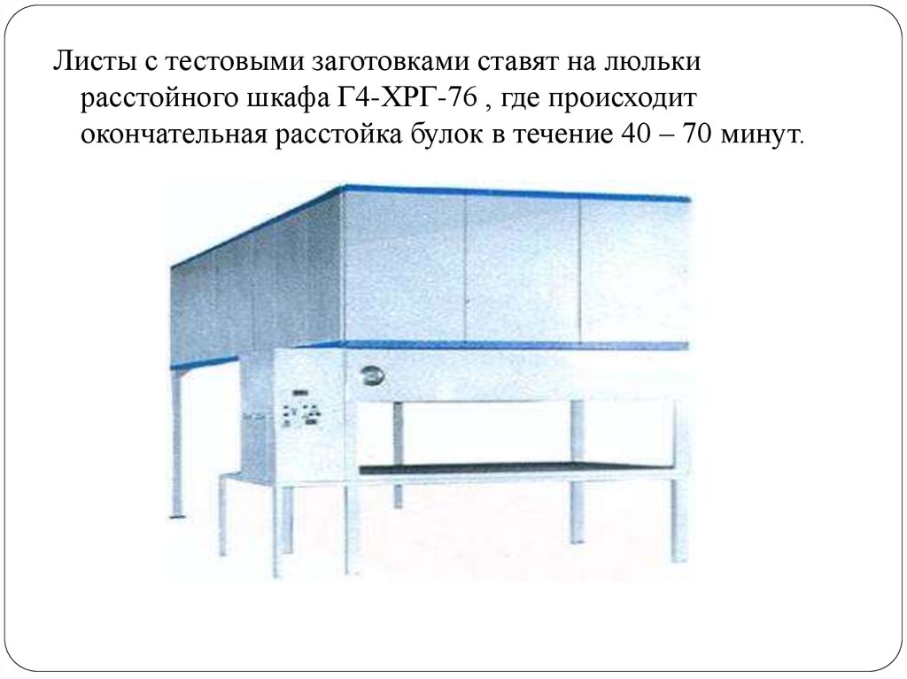 Листы с тестовыми заготовками ставят на люлькирасстойного шкафа Г4-ХРГ-76 , где происходит