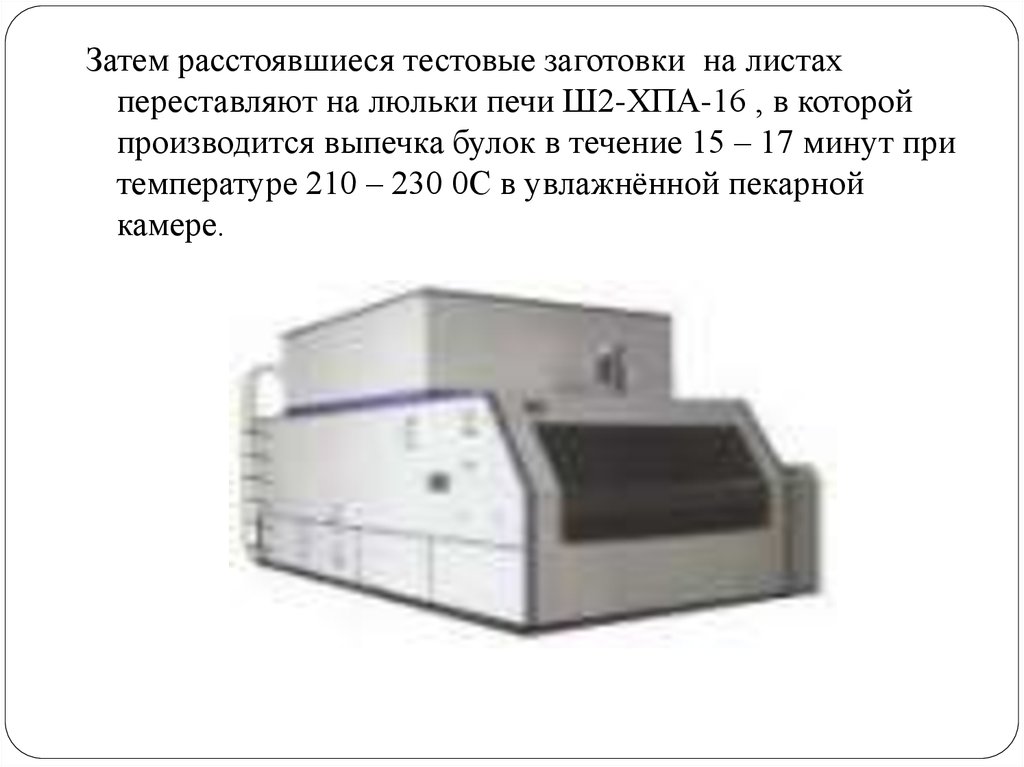 Затем расстоявшиеся тестовые заготовки на листахпереставляют на люльки печи Ш2-ХПА-16 , в которой