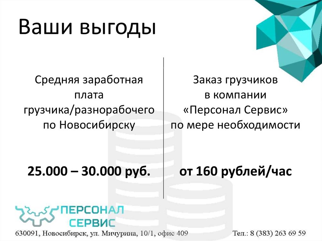 профессиональных грузчиков/разнорабочих;консультирование по подбору рабочего