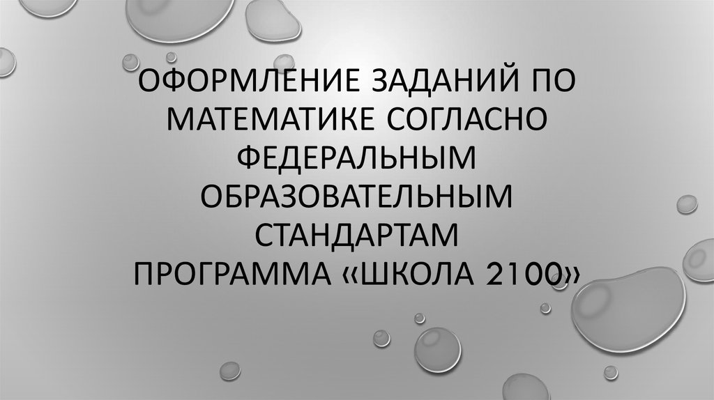 1. Оформление заданий по математике согласно федеральным образовательным стандартам Программа «школа 2100»