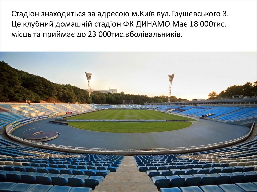 Стадіон знаходиться за адресою м.Київ вул.Грушевського 3.Це клубний домашній стадіон ФК ДИНАМО.Має 18 000тис.