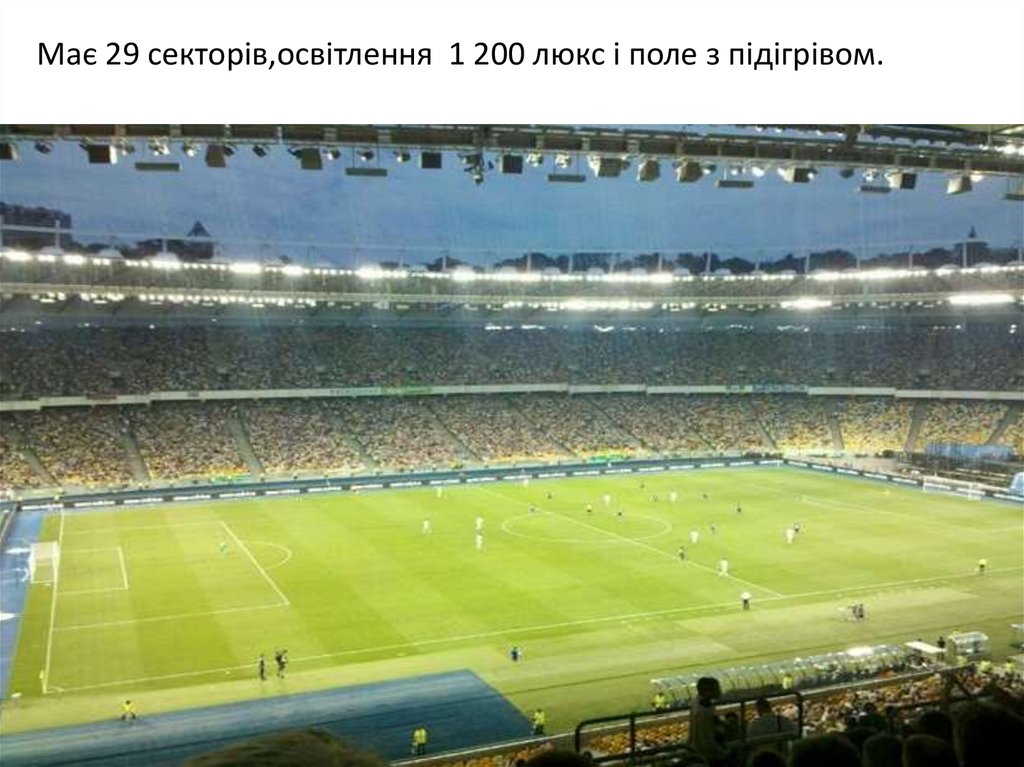 Має 29 секторів,освітлення 1 200 люкс і поле з підігрівом.4.