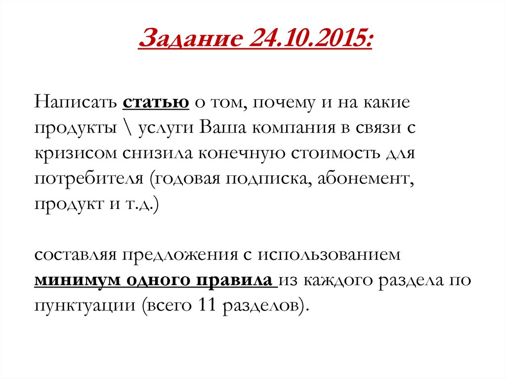 Задание 24.10.2015:Написать статью о том, почему и на какие