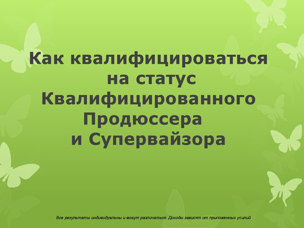 1. Как квалифицироваться на статус Квалифицированного Продюссера и Супервайзора