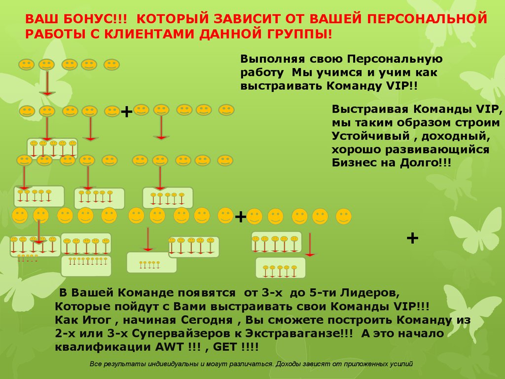 Все результаты индивидуальны и могут различаться. Доходы зависят от приложенных усилий2. ВЫБРАТЬ МЕТОДЫ РАЗВИТИЯ СВОЕЙ ГРУППЫ