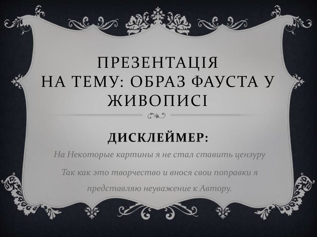 ПРЕЗЕНТАЦІЯНА ТЕМУ: ОБРАЗ ФАУСТА У