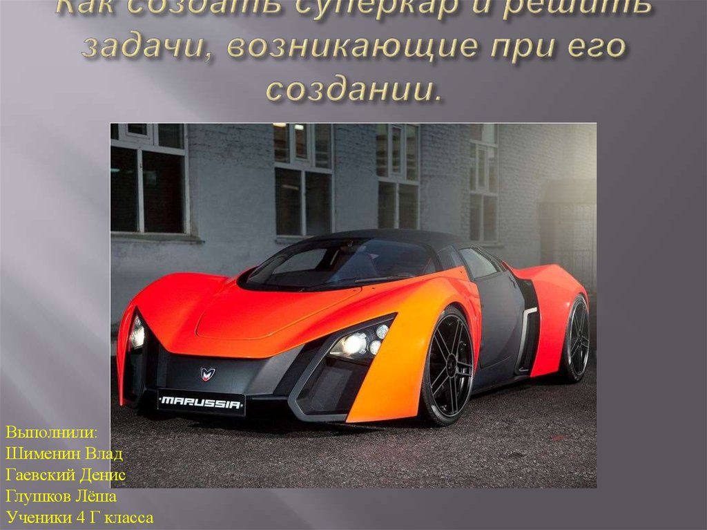 1. Как создать суперкар и решить задачи, возникающие при его создании.