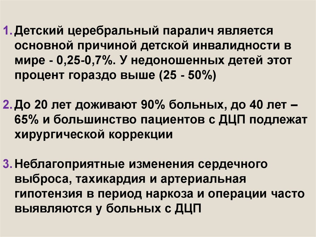 1. Детский церебральный паралич являетсяосновной причиной детской инвалидности в