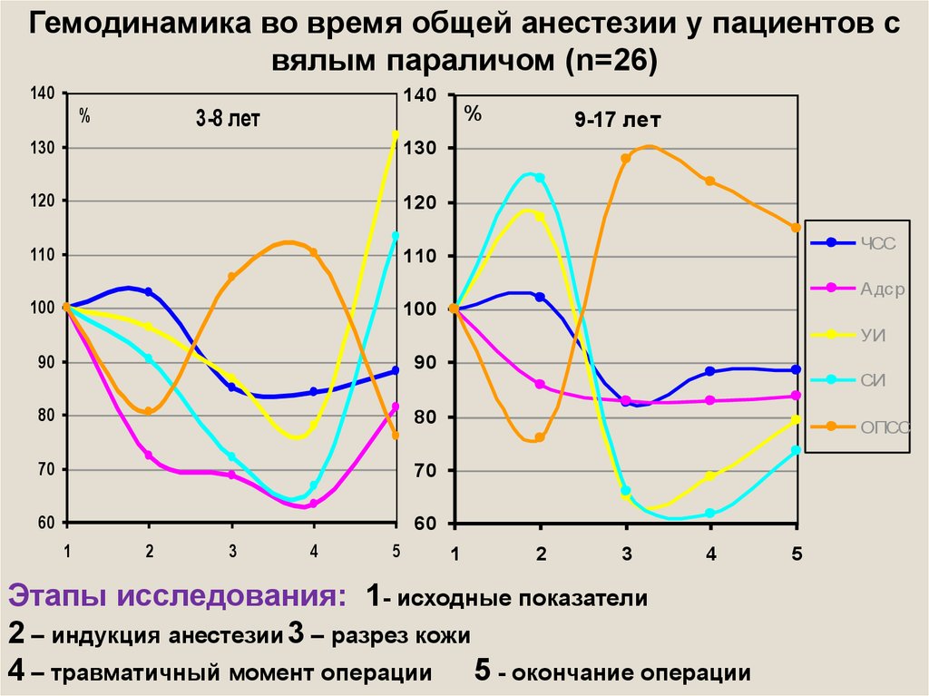 Гемодинамика во время общей анестезии у пациентов свялым параличом (n=26)