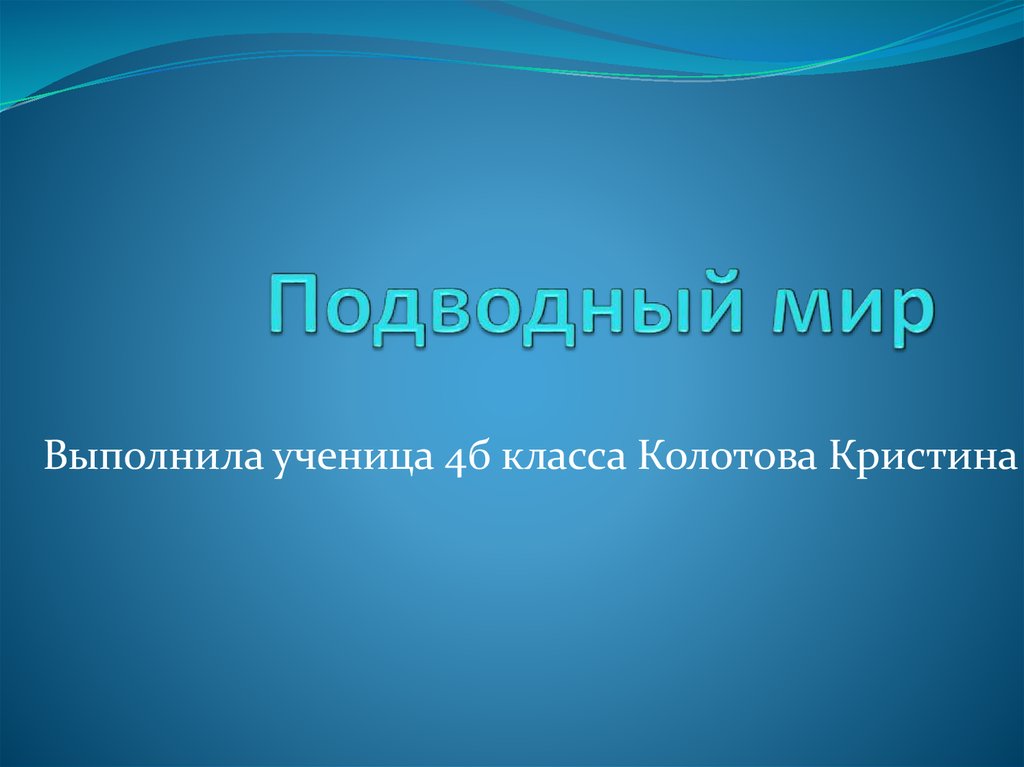 Выполнила ученица 4б класса Колотова Кристина2. Мы сегодня поговорим о подводном мире. Где обитают разные виды рыб, где затонувшие корабли и хищники.