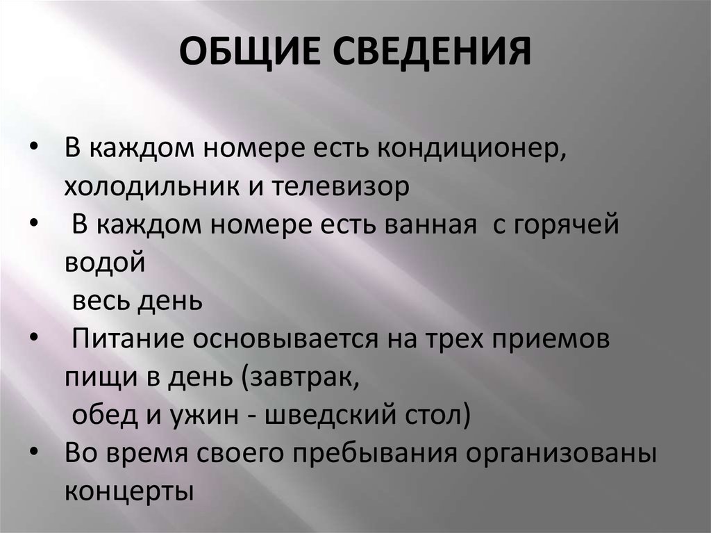 ОБЩИЕ СВЕДЕНИЯ• В каждом номере есть кондиционер,