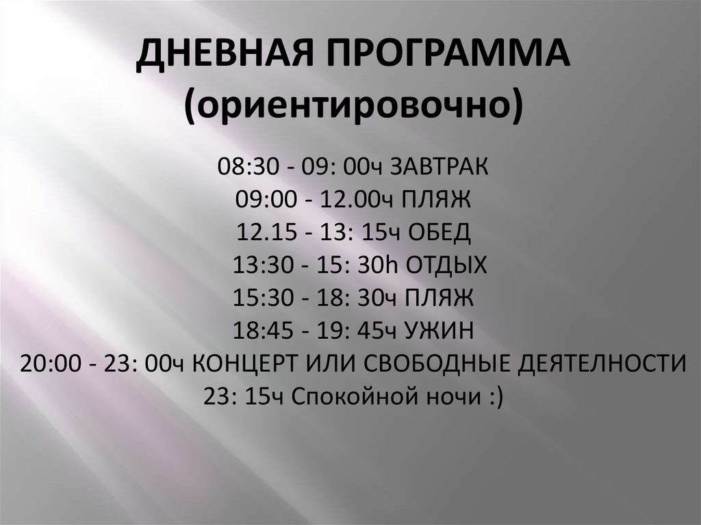 20:00 - 23: 00ч КОНЦЕРТ ИЛИ СВОБОДНЫЕ ДЕЯТЕЛНОСТИ