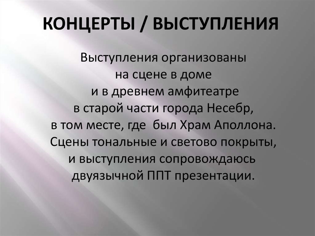 КОНЦЕРТЫ / ВЫСТУПЛЕНИЯВыступления организованы