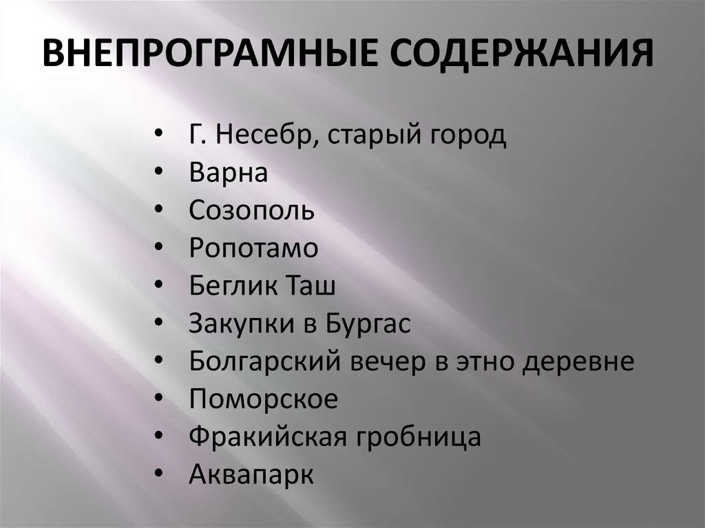 ВНЕПРОГРАМНЫЕ СОДЕРЖАНИЯГ. Несебр, старый город