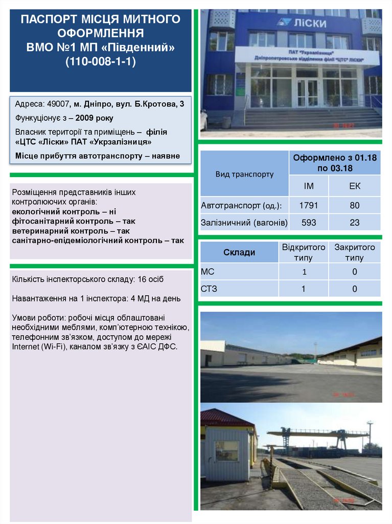 ПАСПОРТ МІСЦЯ МИТНОГООФОРМЛЕННЯ