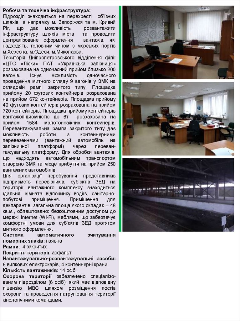 Робоча та технічна інфраструктура:Підрозділ знаходиться на перехресті об’їзних