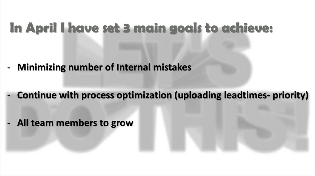 In April I have set 3 main goals to achieve:- Minimizing number of Internal mistakes