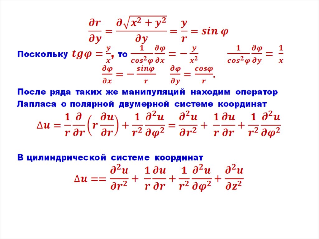 Оператор Лапласа в полярных, цилиндрических и сферических системах координат