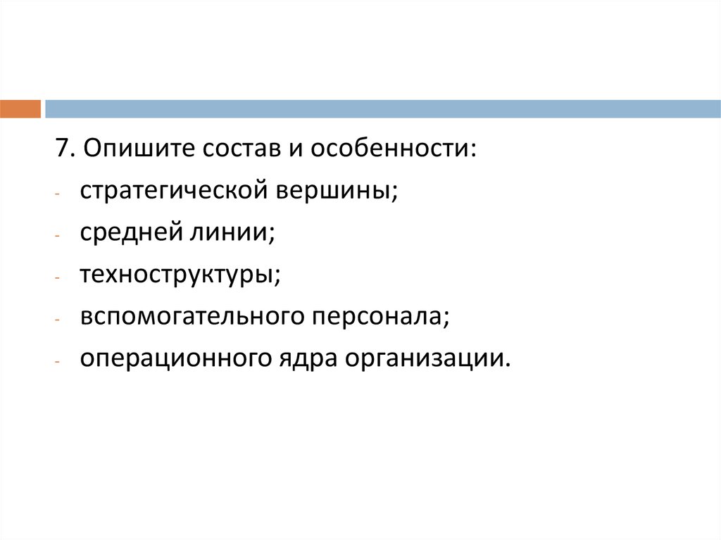 7. Опишите состав и особенности:- стратегической вершины;