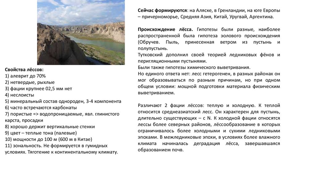 Свойства лёссов: