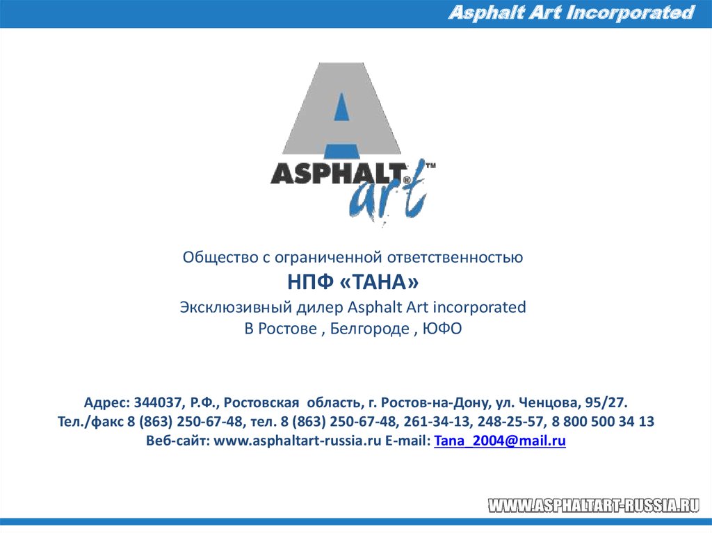 Веб-сайт: www.asphaltart-russia.ru E-mail: Tana_2004@mail.ru