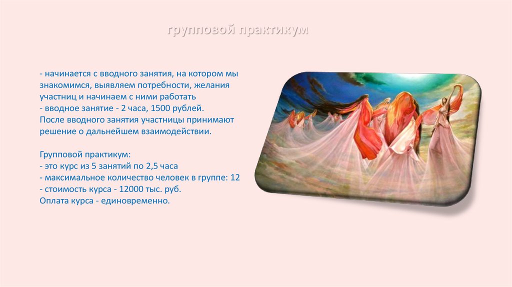 групповой практикум- начинается с вводного занятия, на котором мы