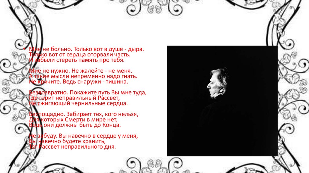 • Мне не больно. Только вот в душе - дыра.Только вот от сердца оторвали часть.