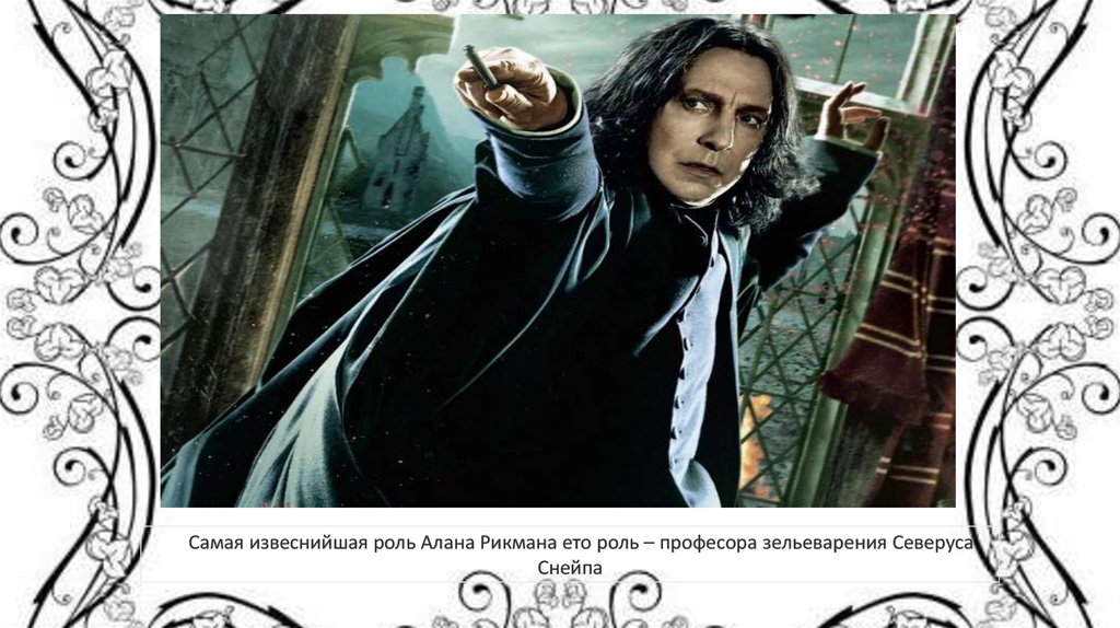 СССамая извеснийшая роль Алана Рикмана ето роль – професора зельеварения СеверусаСнейпа