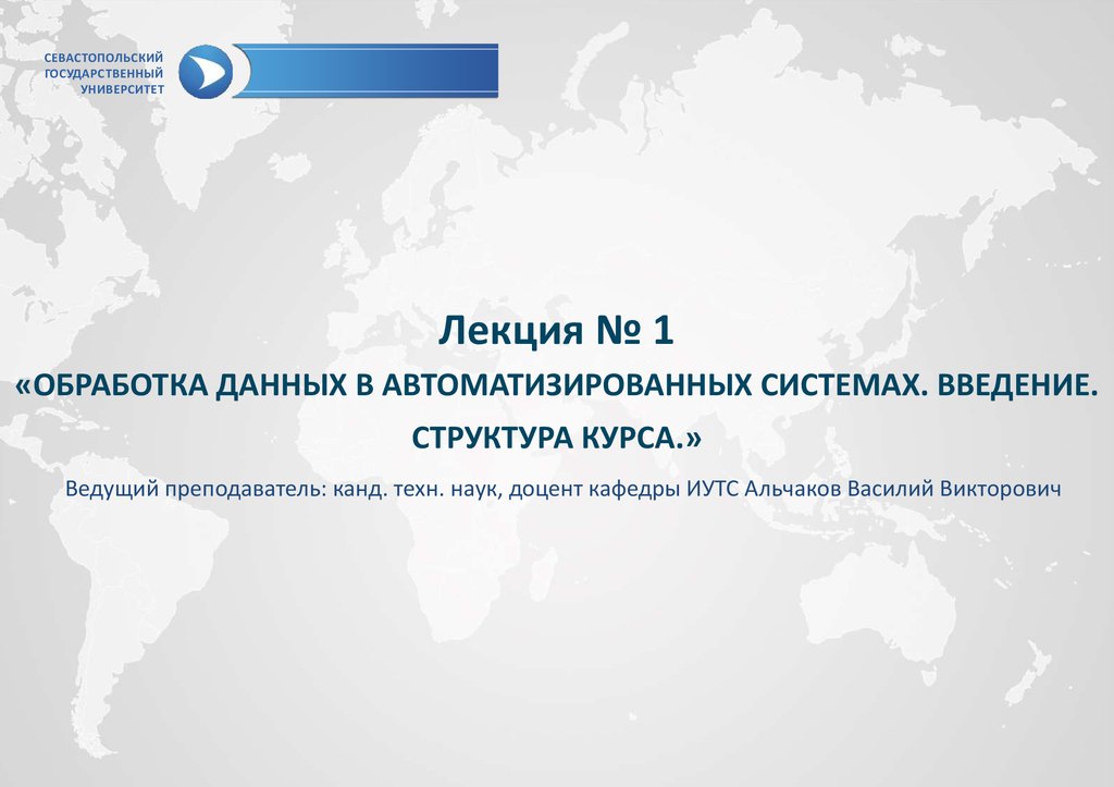 Обработка данных в автоматизированных системах. Введение. Структура курса