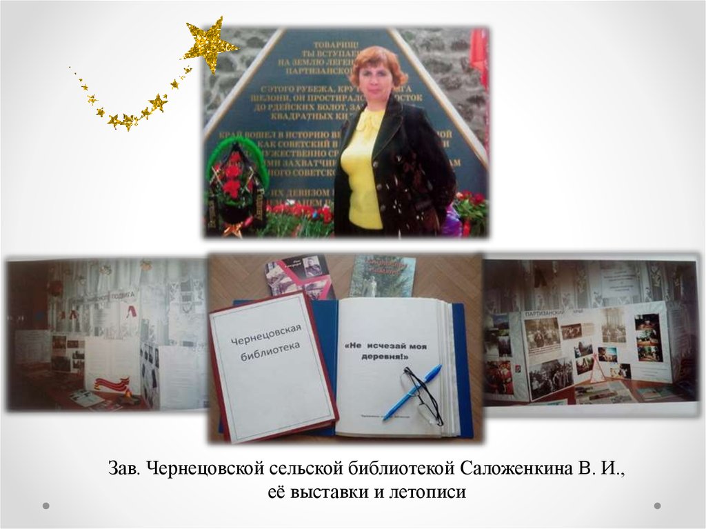 Зав. Чернецовской сельской библиотекой Саложенкина В. И.,её выставки и летописи