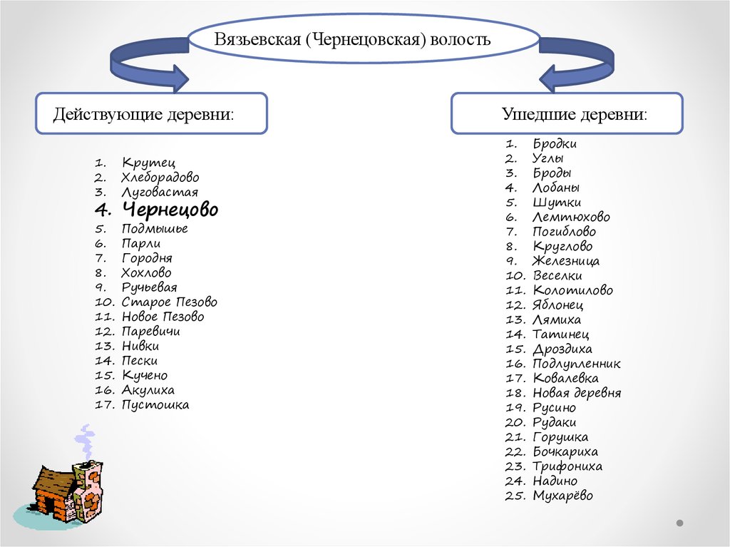 Вязьевская (Чернецовская) волостьДействующие деревни: