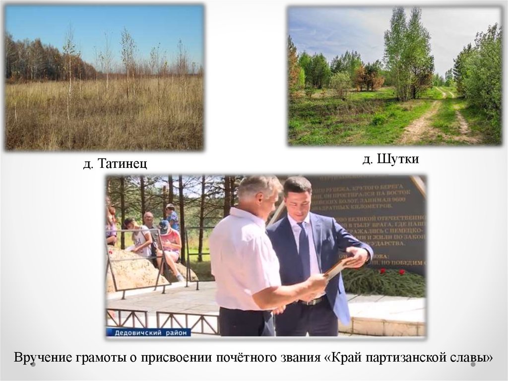 Вручение грамоты о присвоении почётного звания «Край партизанской славы»