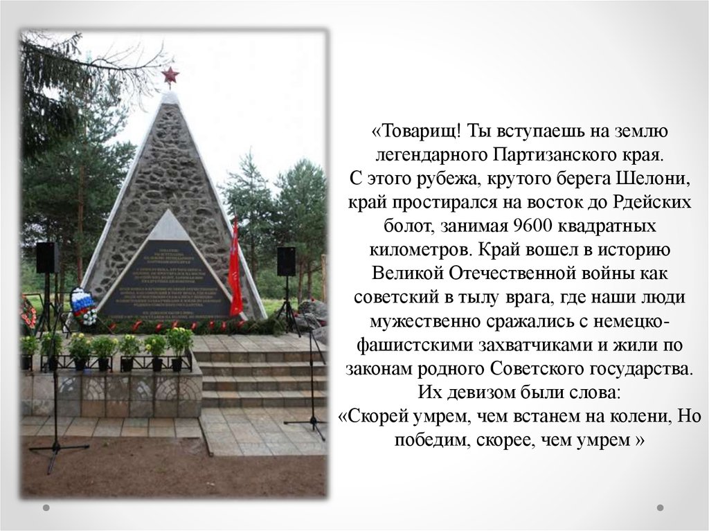 «Товарищ! Ты вступаешь на землюлегендарного Партизанского края.