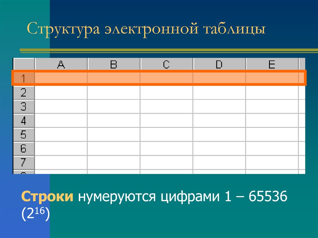 Структура электронной таблицыСтроки нумеруются цифрами 1 – 65536