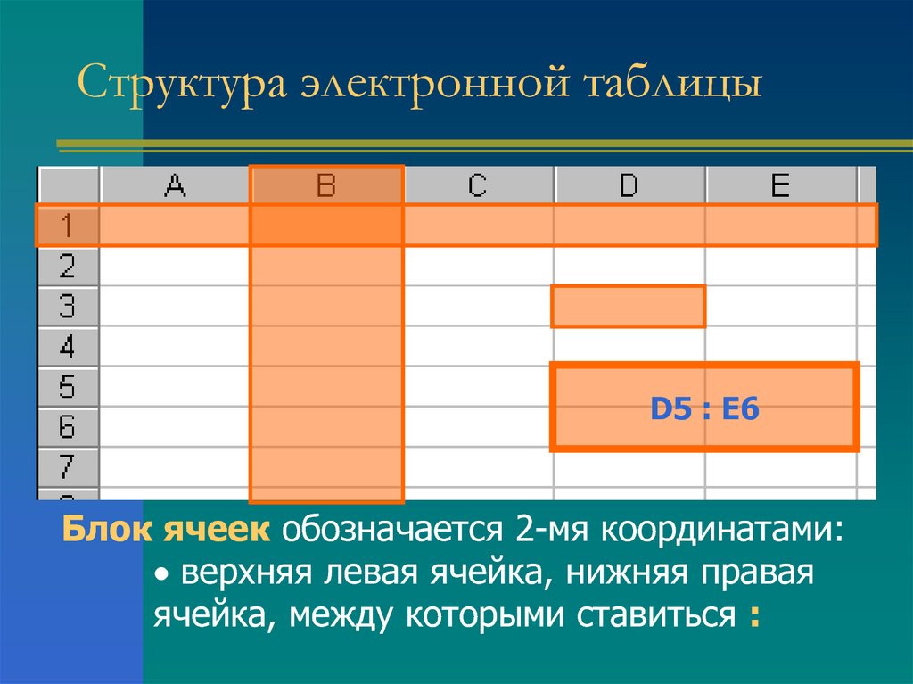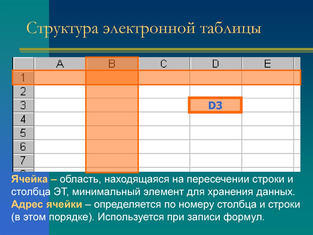 Структура электронной таблицыСтолбцы обозначают лат. буквами или