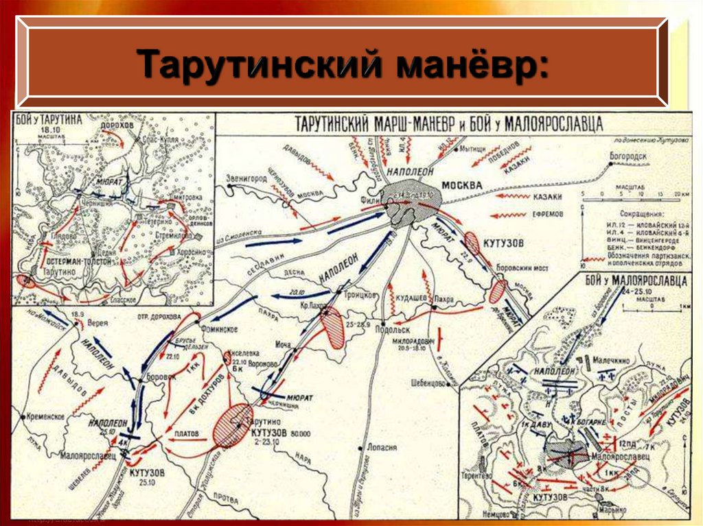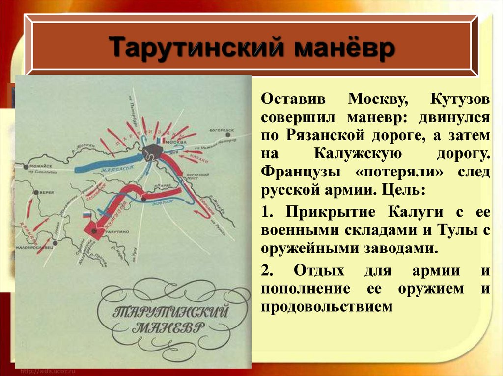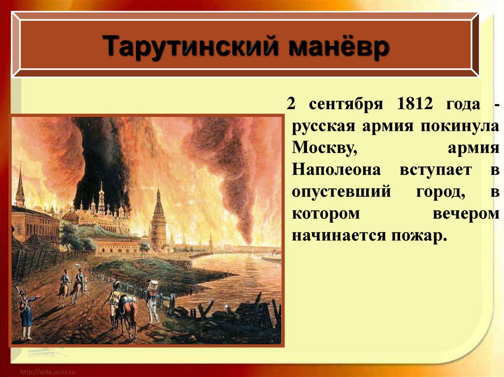 Оставив Москву, Кутузовсовершил маневр: двинулся