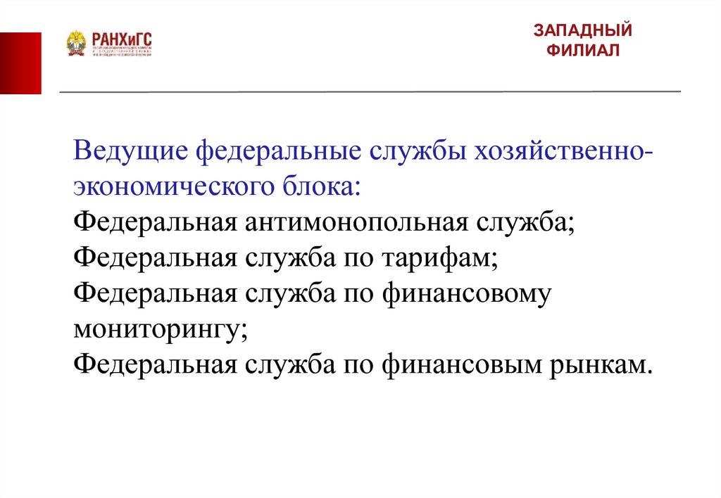 Ведущие федеральные службы хозяйственноэкономического блока: