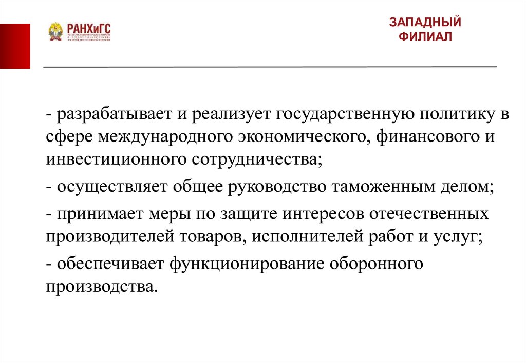 Государственное управление хозяйственноэкономической деятельностью на федеральном