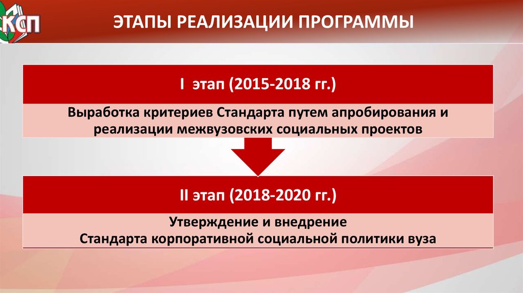 ЭТАПЫ РЕАЛИЗАЦИИ ПРОГРАММЫI этап (2015-2018 гг.)